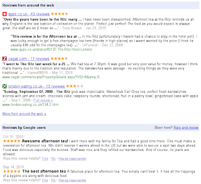 ” section shows results from the most relevant review sites from across the Web.